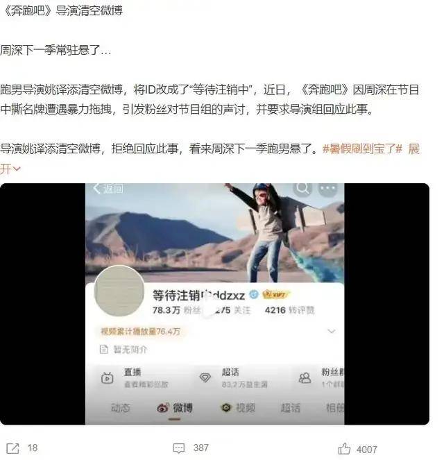 《奔跑吧》第十季播出的时候,“跑男导演姚译添”话题曾登上热搜,原来网友们发现跑男导演突然清空自己的社交账号消息,并修改“等待注销中”,看到这样的话题,大家根本不知道发生什么事情。