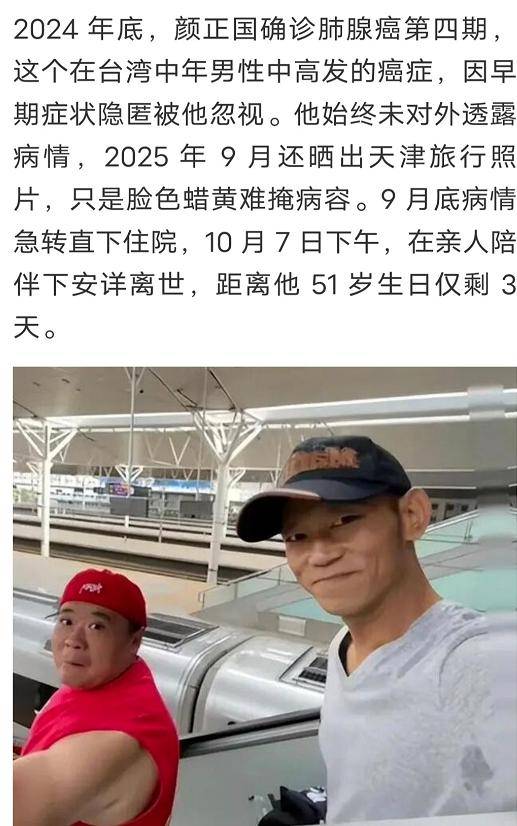 10月7日那天,台湾演艺圈炸了个让人鼻酸的消息,颜正国走了。