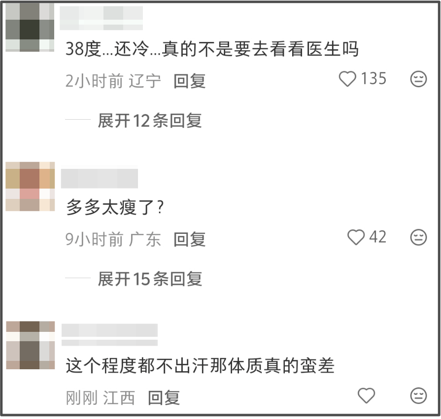 对着镜头,张子枫顶着大太阳和38℃高温跳绳,还是手脚冰凉,黄磊举着手机拍着张子枫,告诉女儿黄多多,张子枫和她一样容易冷。
