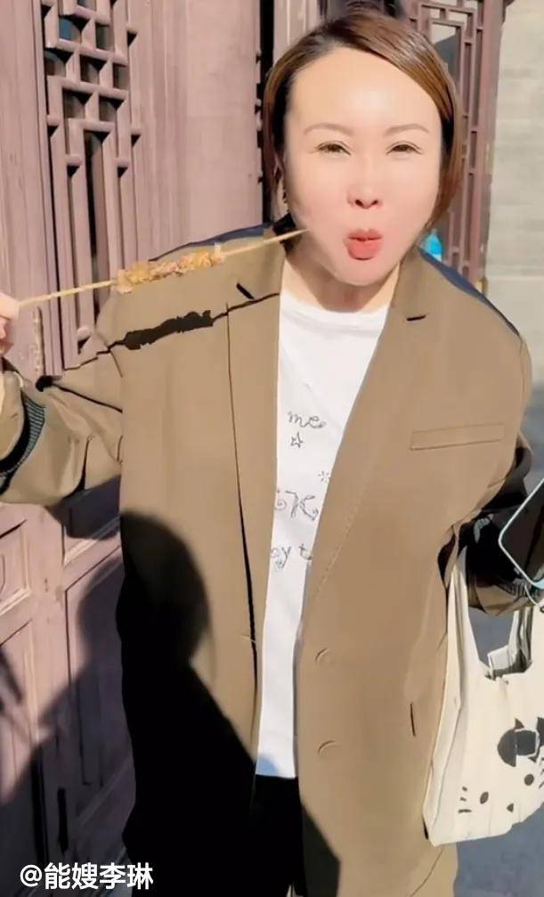 李琳身着卡其色西装套装,看起来非常干练,同时人也瘦了不少。
