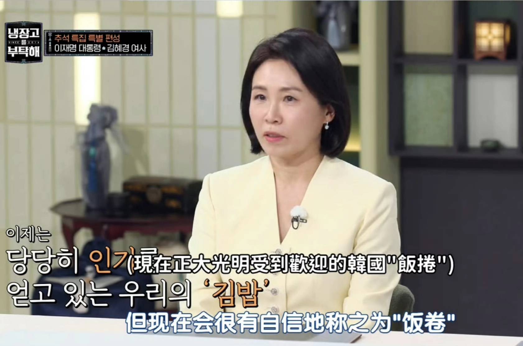 金惠景则谈及韩式饭卷的普及现象。她说在海外的超市里,韩式饭卷的销量非常火爆,以前国外的人们通常把它称作寿司,但现在她很自信地把它称为饭卷,强调这是属于韩国的独特食品在全球市场中的新名片。她的表述让人感觉这道日常美食已经成为跨境文化传播中的重要符号。