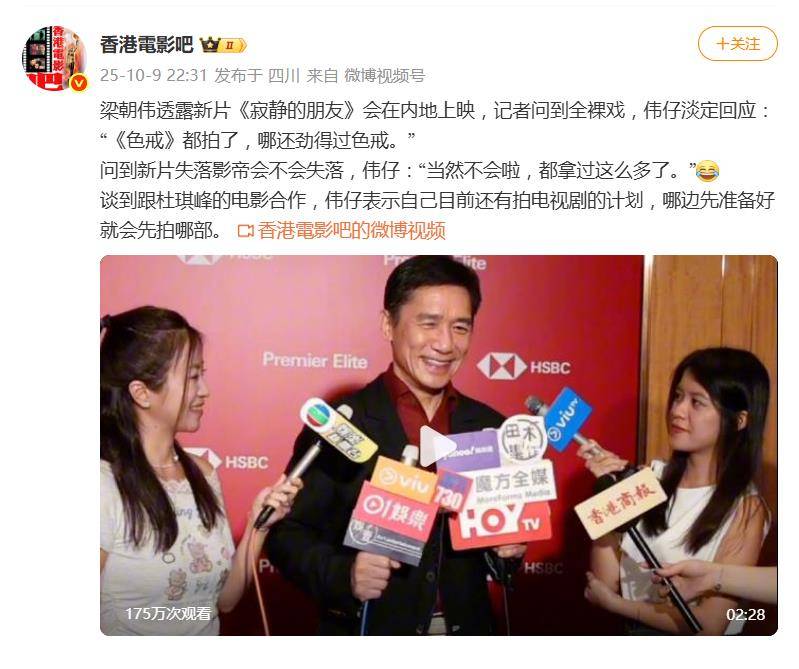 当记者问及在新片《寂静的朋友》中的全裸戏份时,梁朝伟的一句回应堪称经典:“《色戒》都拍了,哪还劲得过《色戒》。”这份源自影帝的淡然,瞬间在网络上引发了热议,让人不禁感叹:你伟仔还是你伟仔。