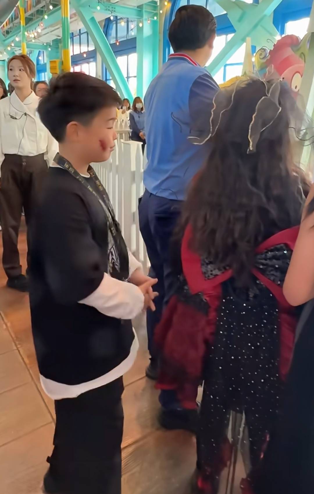 不过在游玩排队的时候,董璇和佟丽娅还是给朵朵安排了一件黑色斗篷,董璇还很贴心地帮朵朵整理帽子,小朋友打扮得有趣些,玩起来也更有体验感。