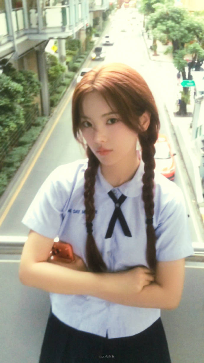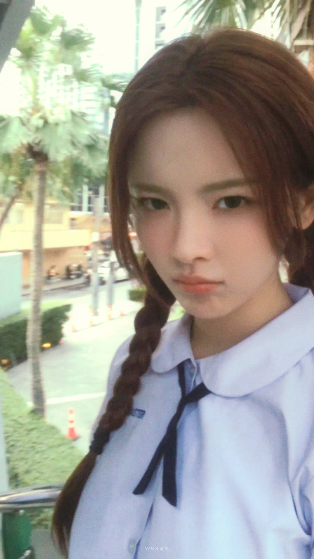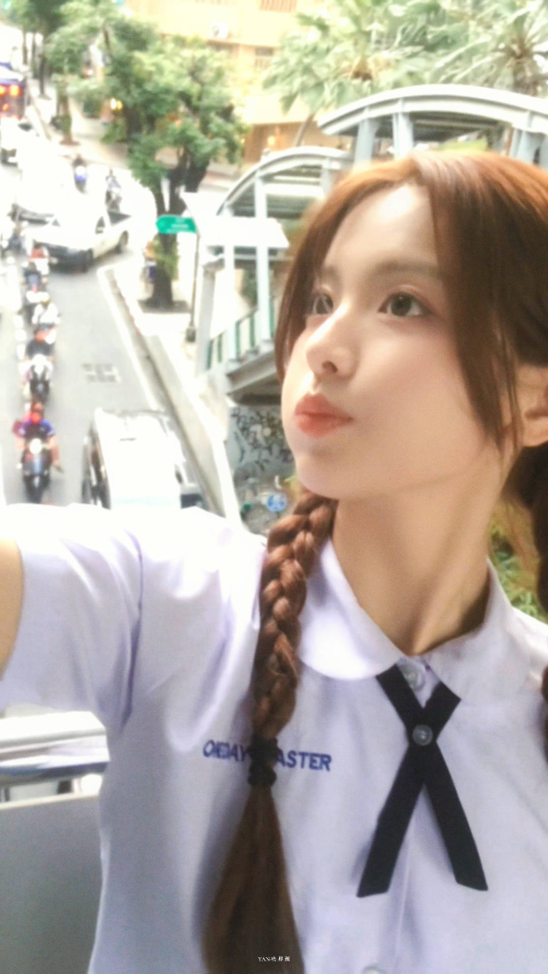 杨超越穿传统泰国校服 搭配双麻花辫清新活力