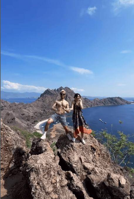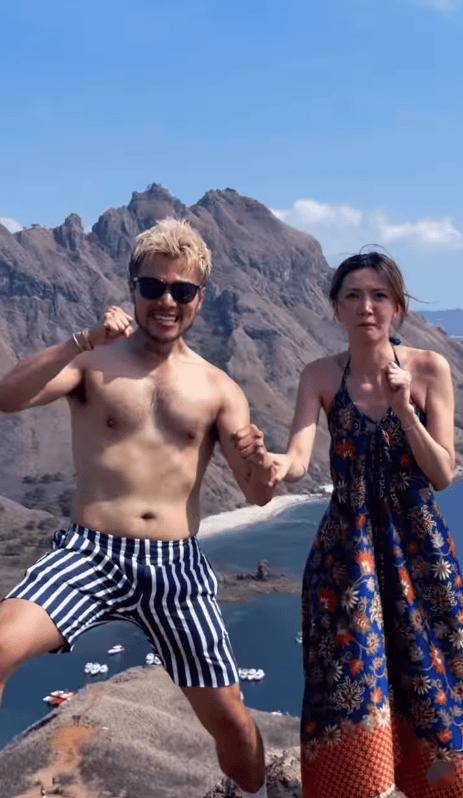 视频中可见吴若希穿着分体式泳装在海滩拍照,她和一名半裸男子在山上打卡,期间紧紧牵着对方的手,这名男子是时尚设计师任朗呈(Mountain),画面里没她老公身影。