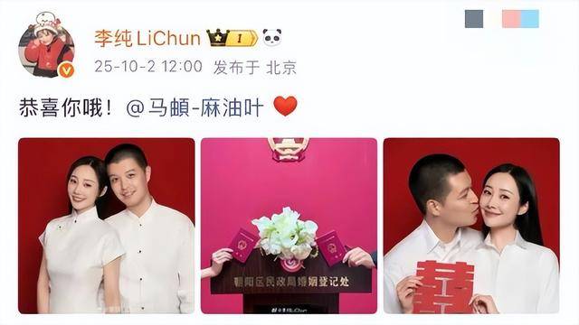 10月2号,李纯在社交平台上晒出自己和歌手马頔领证结婚的喜事。