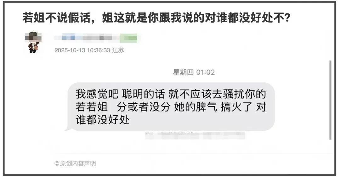 当然了,针对谈恋爱这件事,虽然田栩宁始终嘴硬,但是另一位当事人却有话要说。有网友曝光了疑似若若上周四给自己发的短信,内容就是希望瓜友别再打听他们的事,别骚扰自己,分或者没分全凭大家判断,但是若若不想这件事情闹大,以她的脾气,惹急眼了对谁都没有好处。