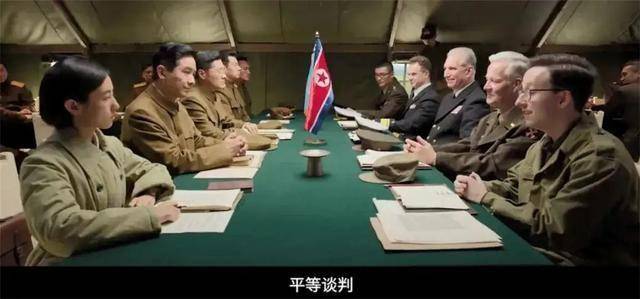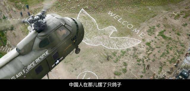 和平沾染着鲜血,有人期待,也有人践踏。为了迎接参与和平谈判的美军,志愿军用石子摆出和平鸽的图案彰显友好,结果美军把直升机停在和平鸽的头上,直接冲散了图案,践踏我方的诚意。此处剧情设定,不仅预示着象征着和平的理想就此破灭,还暗示着在外交过程中,只有强者才会拥有主动权,获得话语权,站在高位俯视一切,可以无视规则。