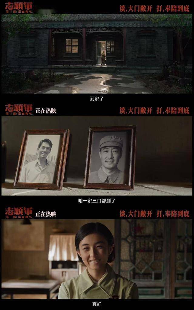 70年后,当李晓用父亲曾经带上战场的那把钥匙打开家门时,一切都尘埃落定,父亲和哥哥确实都离开了,一家三口再也无法实现团聚了,独自一人站在家里的李晓,只能望着亲人的照片表达思念。