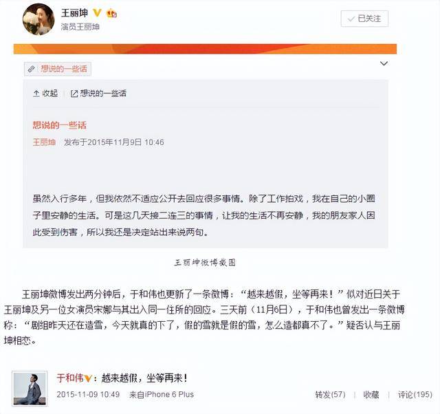 于和伟和王丽坤也各自出来澄清,于和伟更是当众对妻子深情告白:我余生都不会背叛我的妻子,不会辜负她。