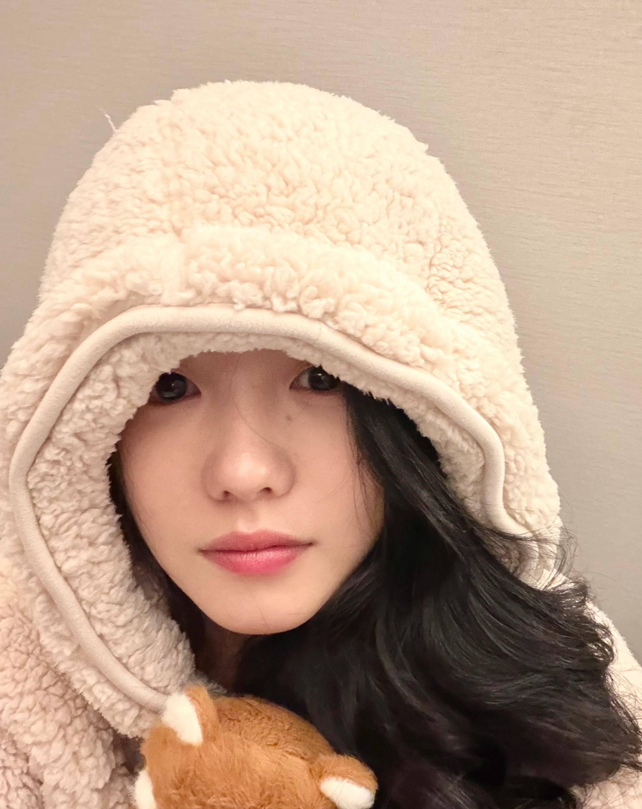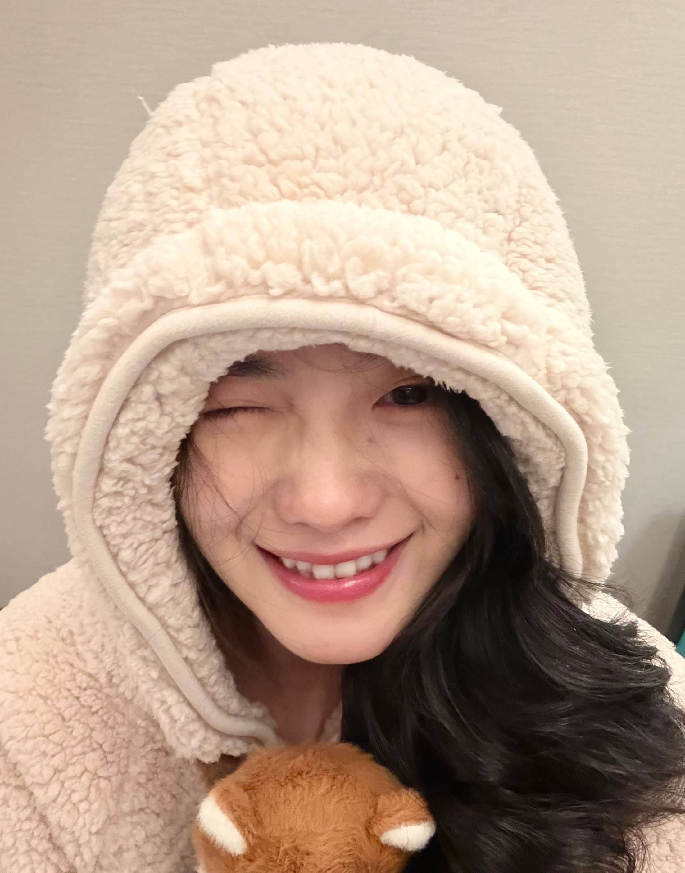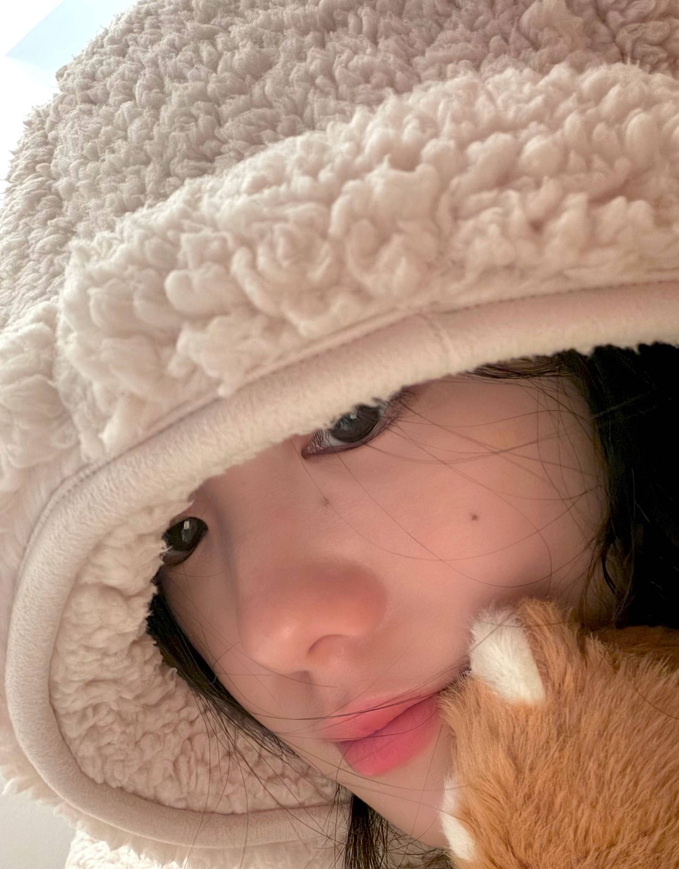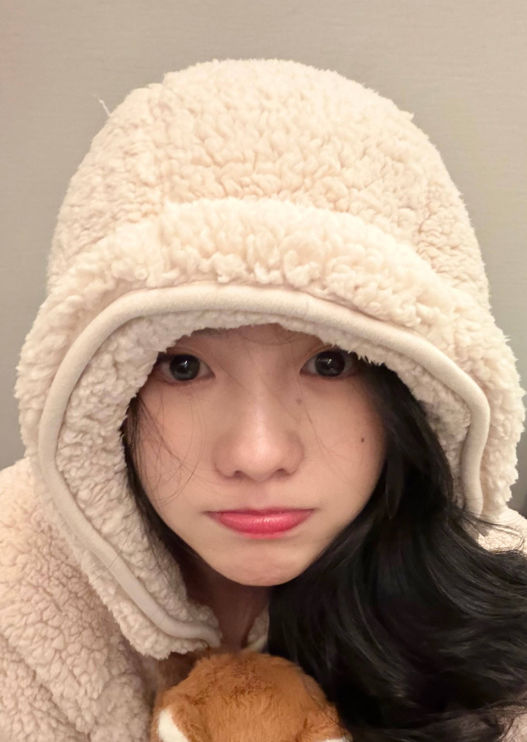 搜狐娱乐讯 10月13日。刘浩存在社交平台分享一组营业照。图中,她穿米白色毛绒连帽装,抱棕色玩偶,眼神明亮,温柔可爱。