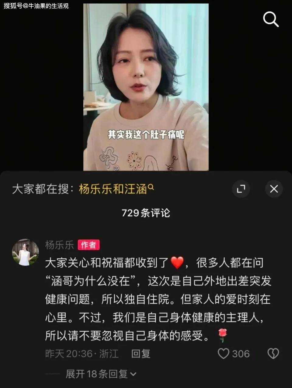 网友们炸锅了,老婆住院老公就应该去陪伴,大家都在质疑他们的婚姻出现问题,杨乐乐解释说她人在外地突发病情,老公不在身边,家人的爱在心里。