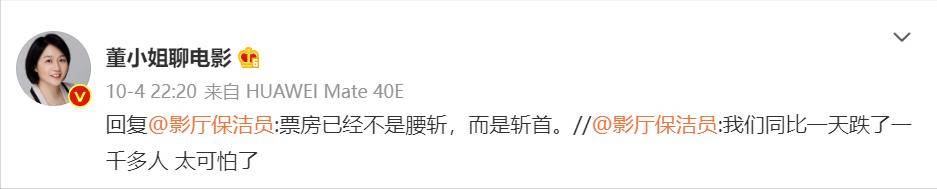 今年到目前为止,全国电影的总票房比去年一年都要高,也就是说市场还是在一点点复苏,就是国庆档没有跟上趟。