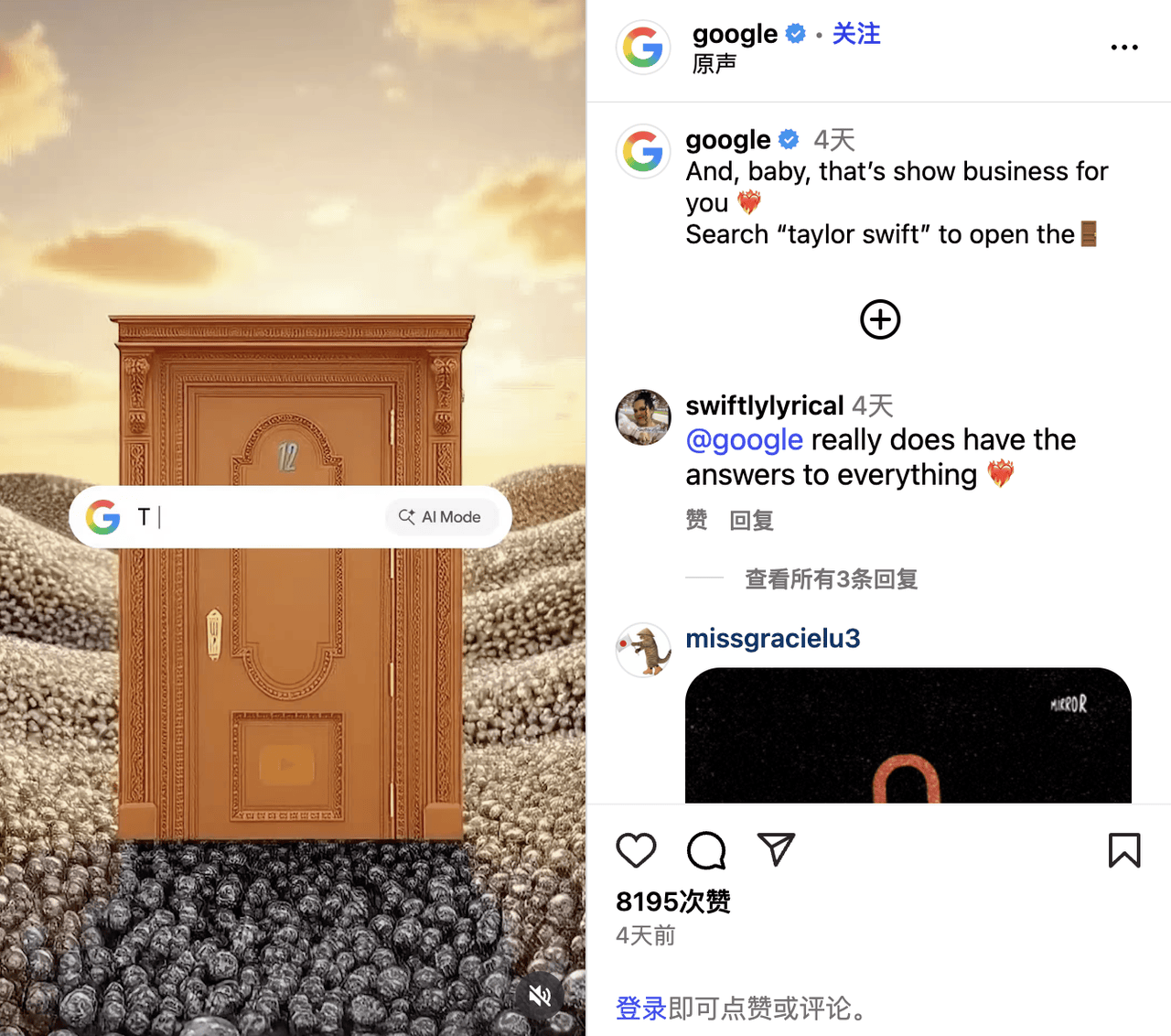 有网友猜测,Google 与霉霉的合作本身就是一个信号:巨头们急需为其 AI 工具寻找「杀手级应用」场景, 而娱乐营销正是最佳试验场。