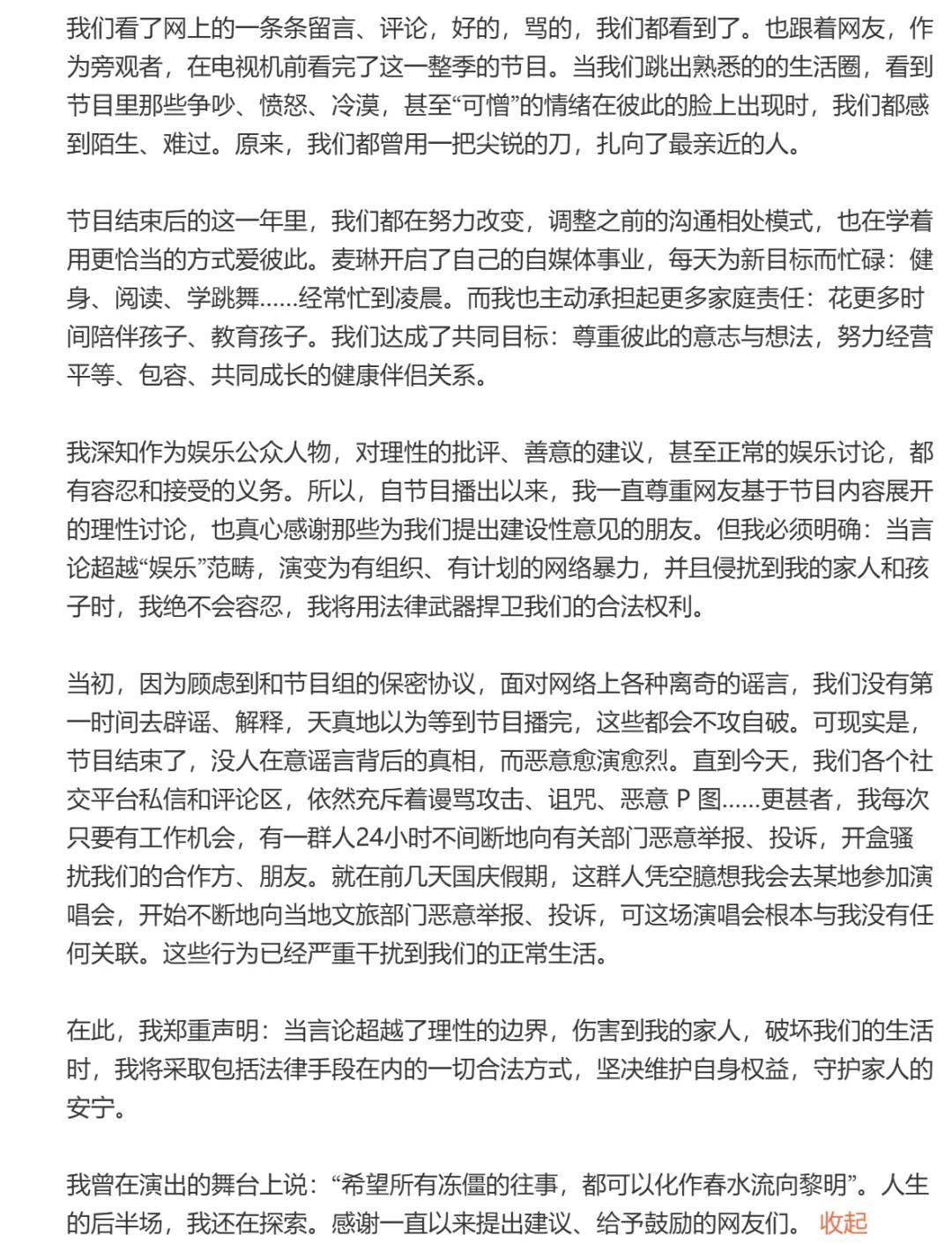 2.没想到,节目中最出圈的却是他们夫妻,节目中他们的言行被网友逐帧解读,而后开始谣言满天飞。当时因为和节目组签署了保密协议,所以他们很多东西无法澄清和解释。