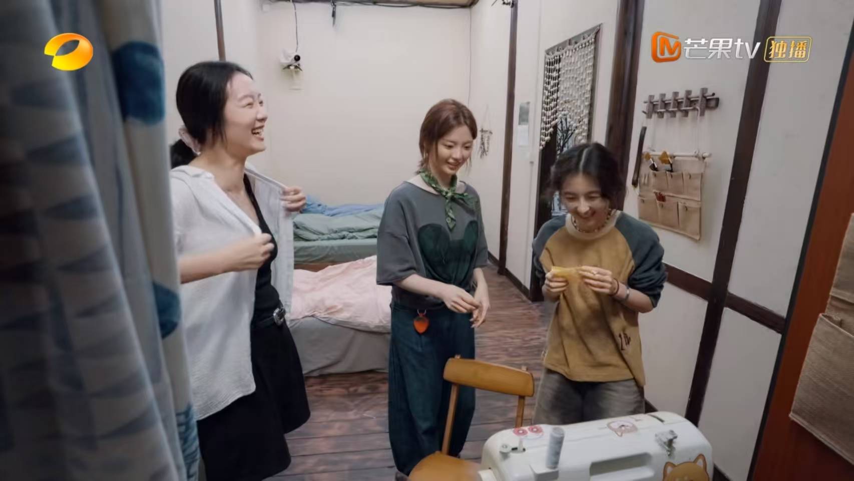 我们经常会说戏如人生,那什么样的人生才是戏剧呢?并不一定站在舞台中央才能算戏剧,在蘑菇屋这样的场景,张子枫随便给绿植浇水是一种戏剧,彭昱畅坐在门口也是一种戏剧,杨超越安安静静地坐在缝纫机前也是一种戏剧。