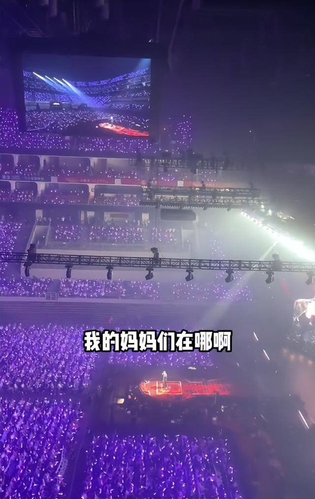 演唱会开始后,老人满头白发梳得整整齐齐,眼神却亮得很,她看到台上的儿子,应该是感慨万分、倍感骄傲吧。