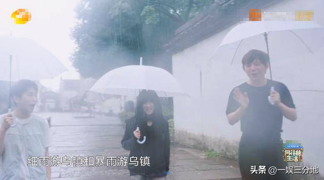 在没有嘉宾来的时候,何炅带着彭昱畅和张子枫,暴雨中游玩乌镇的画面,真有种岁月静好的氛围。