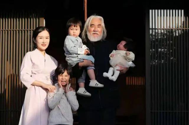 张纪中白胡子一大把,也是一堆孩子,最小的才一岁。