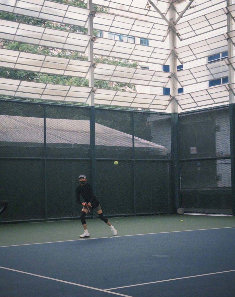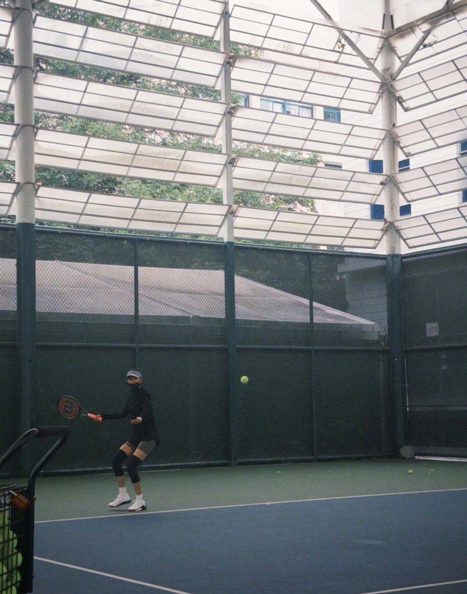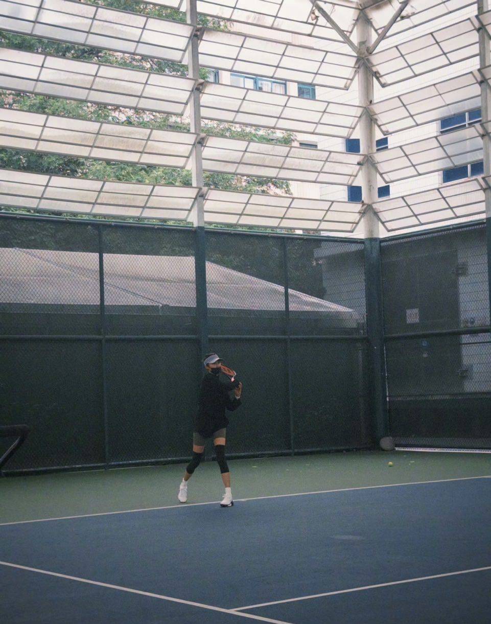 搜狐娱乐讯 10月14日,关晓彤在社交平台分享一组运动照。图中,关晓彤身着运动装,在网球场挥拍,动作专业,青春有活力。