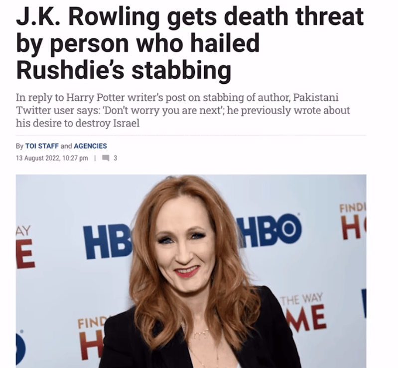 人身名誉攻击、物理消灭的死亡威胁都可以忍,但是向公众扭曲“爱”的定义,这个绝对不能忍。前者威胁的是罗琳作为个体的生存,后者威胁的是全人类的生存。