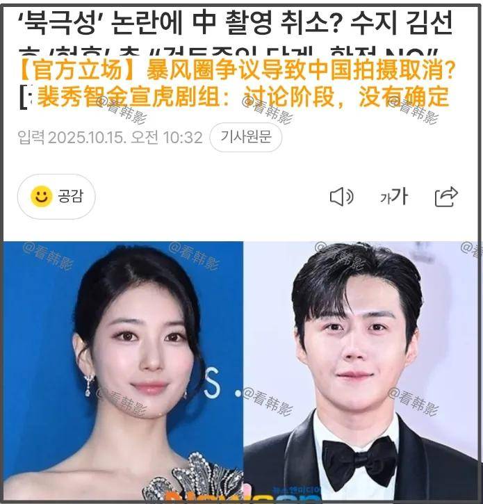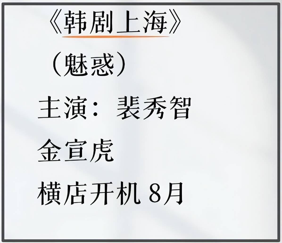 自从横店官宣和韩国公司达成合作之后,不少韩剧都蠢蠢欲动想来中国取景拍摄,裴秀智新剧《魅惑》此前还传闻要在横店开机,但如今看来这个计划是泡汤了。