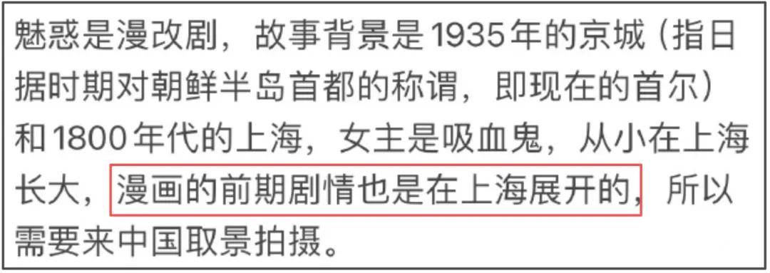 不过部分网友还有担忧,据悉《魅惑》这部韩剧是漫改剧,之所以想来中国取景,是因为原著漫画的故事背景一共就两个地方,早年的首尔和1800年代的上海,前期剧情也是在上海展开的。
