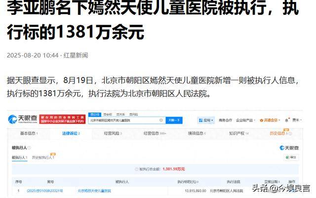 中间恰好隔着嫣然医院1381万执行标的的曝光。
