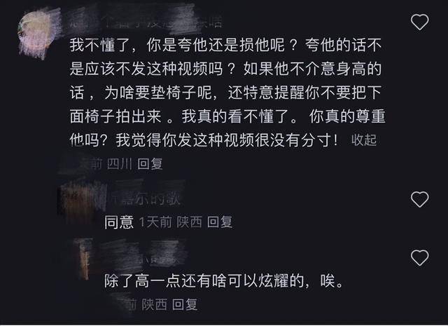 还有网民认为蒋丽莎此举,完全不顾及王嘉尔的尊严。觉得蒋丽莎作为公众人物,此举既失分寸更缺尊重,只是想显摆自己的身高而已。