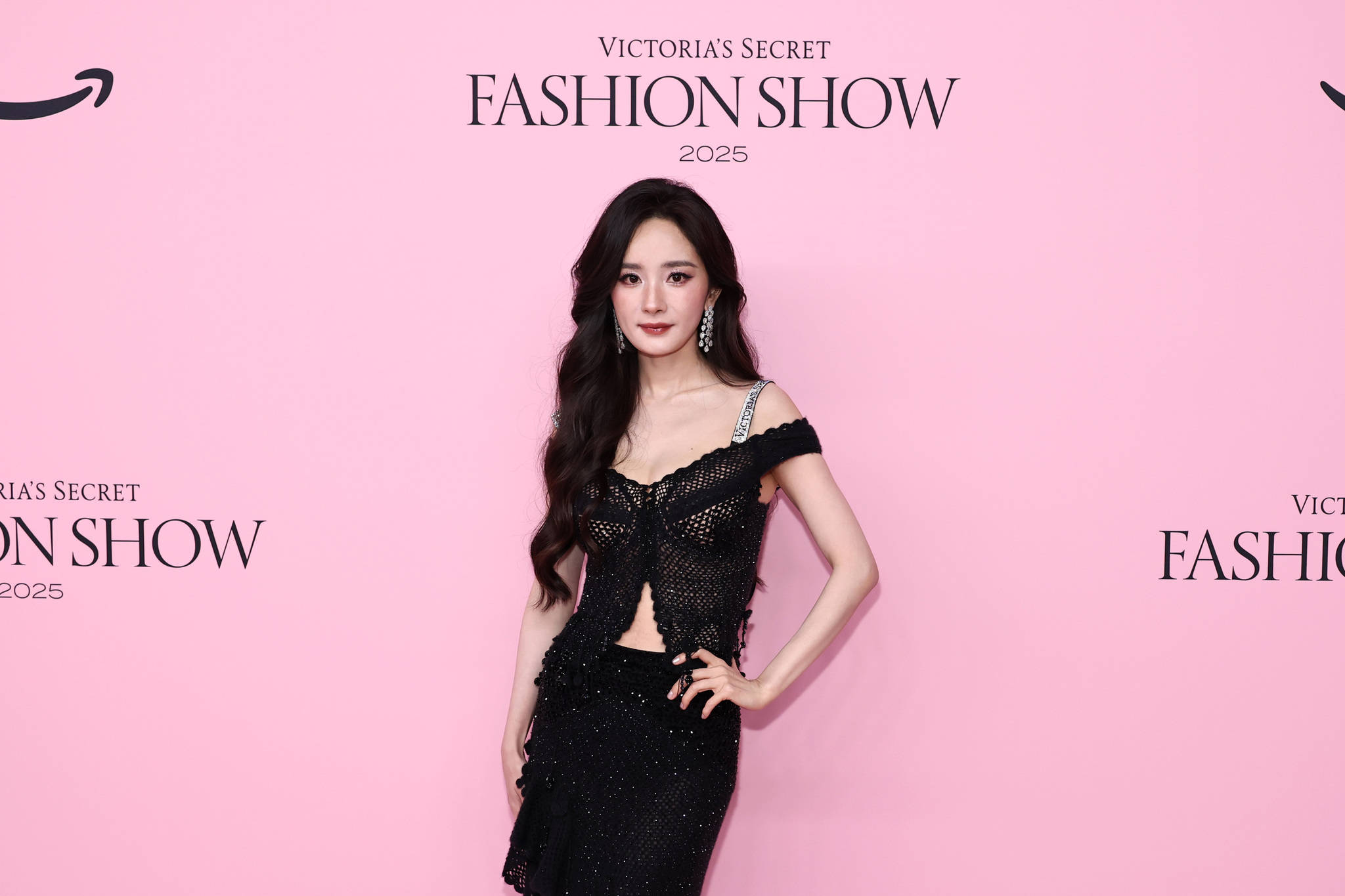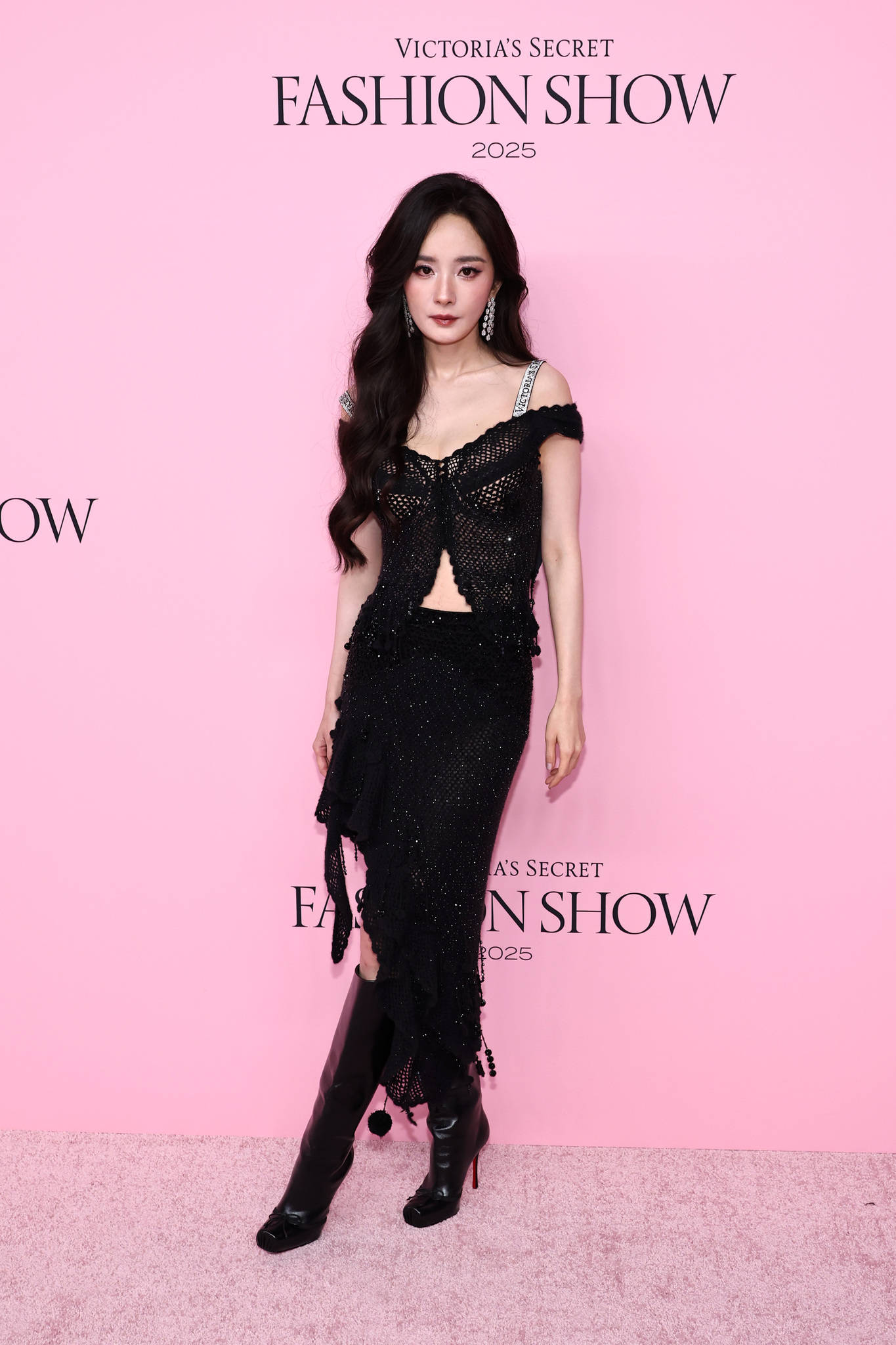 杨幂现身维密大秀粉毯生图曝光 穿一身黑裙秀出好身材