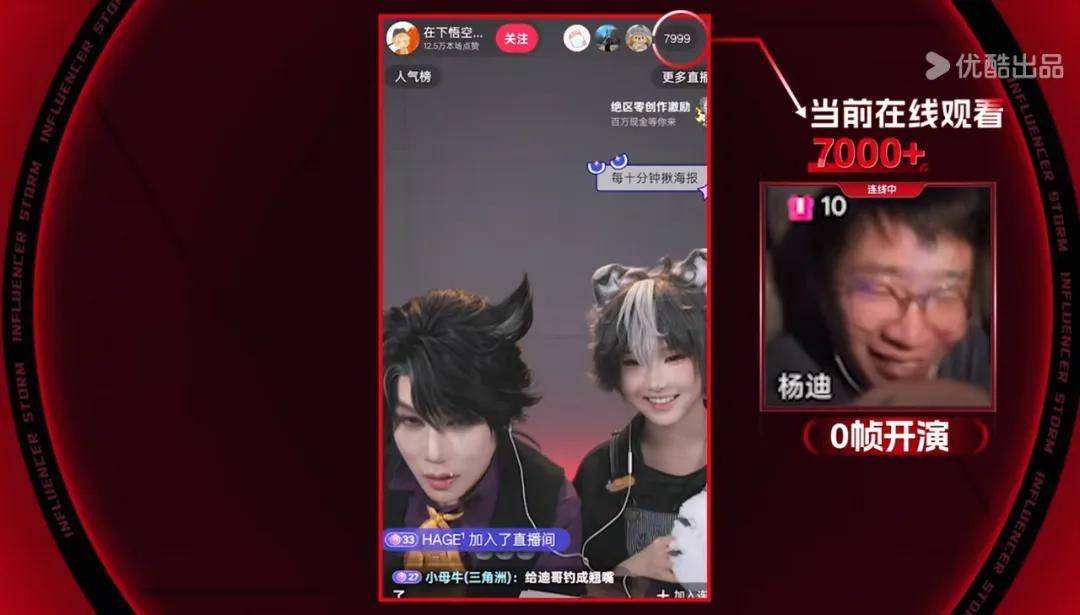 在下悟空是也走的是Cosplay赛道,虽说互动能力也很强,但强在线下,线上直播中,纯cos的装扮很难带来更多的停留,即使有艺人刘维、杨迪的助力,也走得步履维艰。
