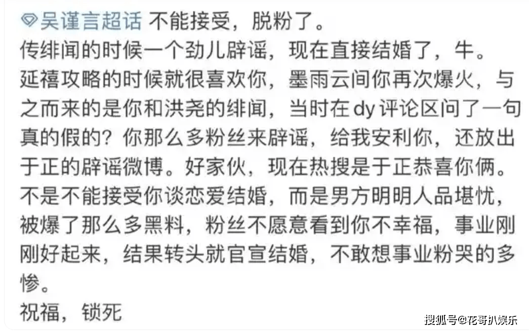 虽然现在工作室辟谣了,但是内娱辟谣之后又被打脸的艺人还少吗?例如最近要办婚礼的某韬。