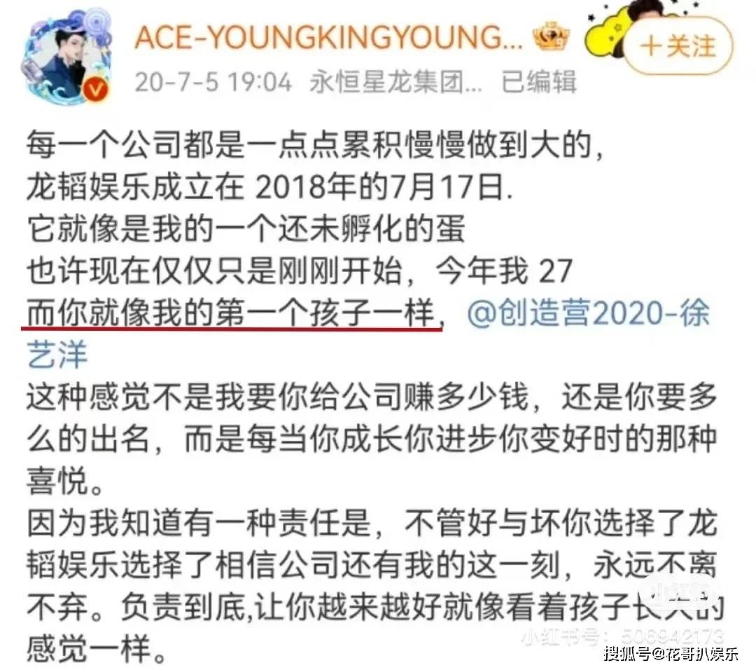 在他口中,徐艺洋是他妹妹、是他公司艺人。