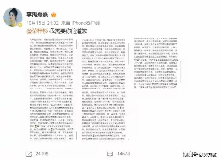李禹熹曝光以上内容就是想要一个道歉,可最后等来的却是荣梓衫工作室的一纸声明。