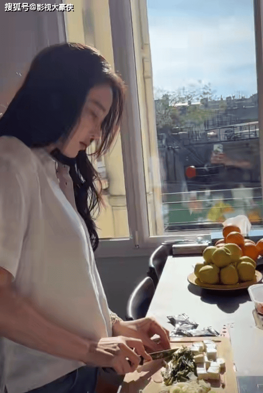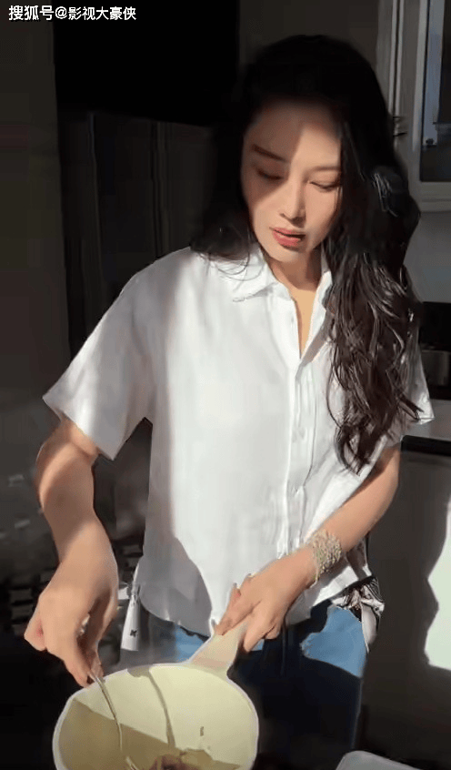 睡醒后的张馨予也不闲着,扎进厨房就开始忙活,视频里她穿得特家常,简单的T恤配围裙,头发随意挽起来,洗蔬菜、切配料的动作超熟练,一看就是经常做饭的人。