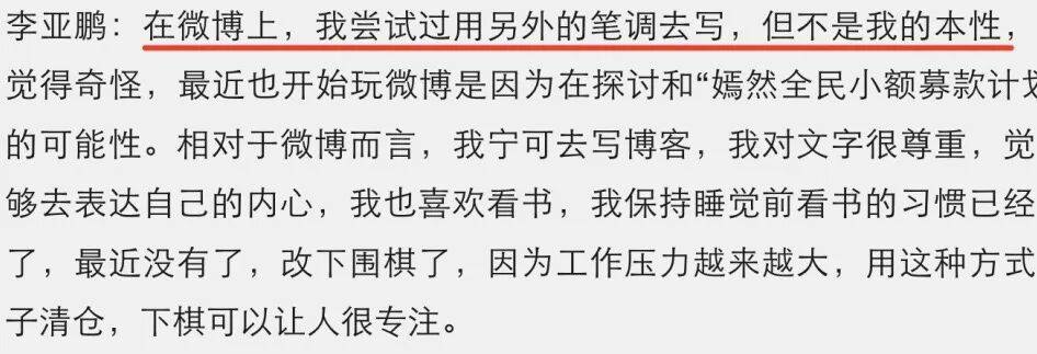 至于微博上那些情深深雨濛濛的论调…李说这并非出自他本心。