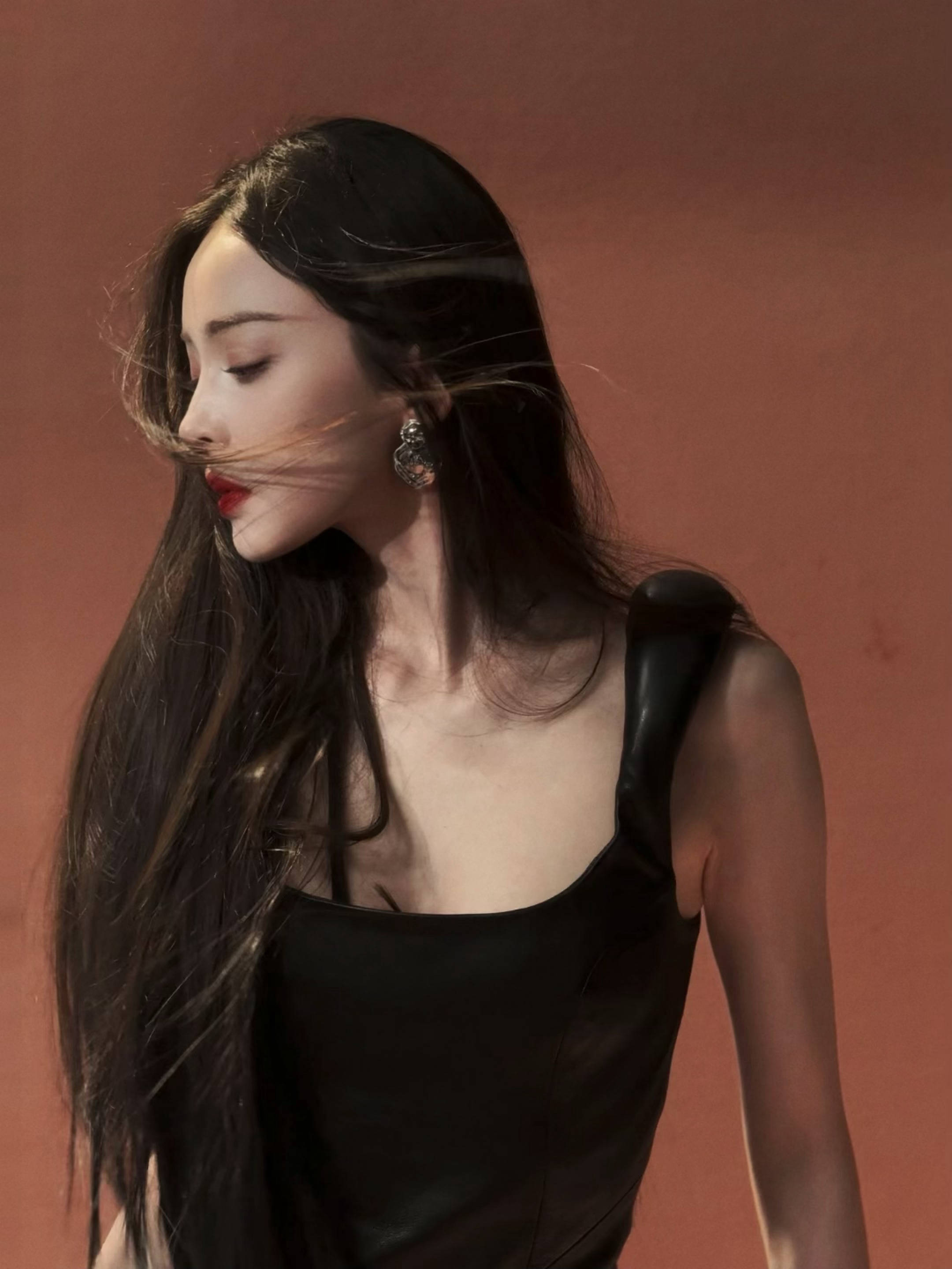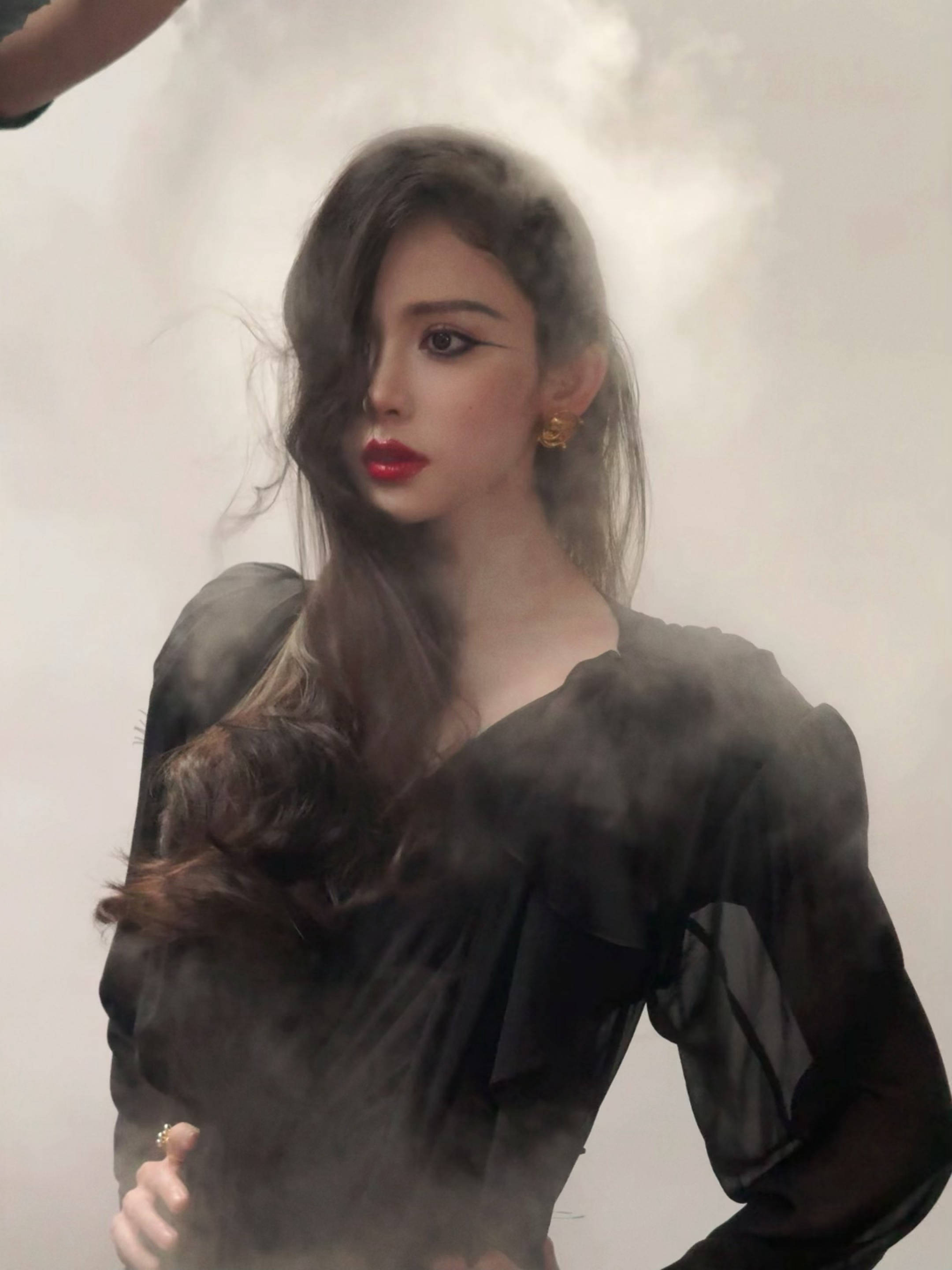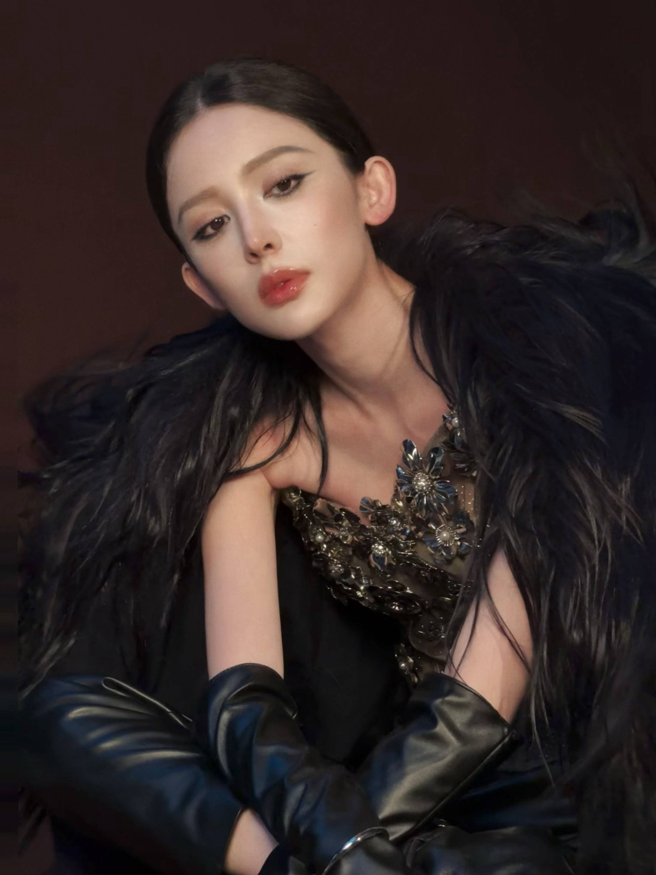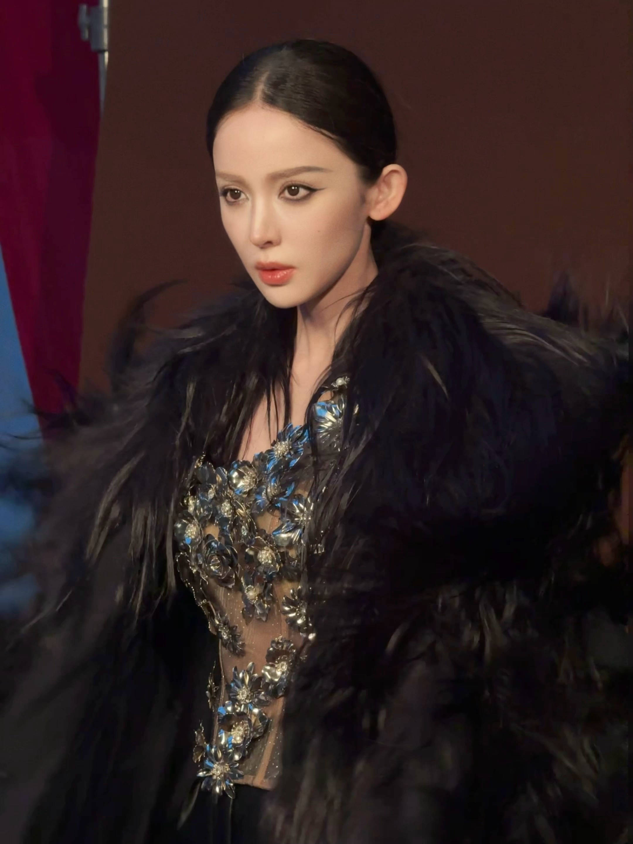 古力娜扎身披黑色羽毛翅膀,气场强大。