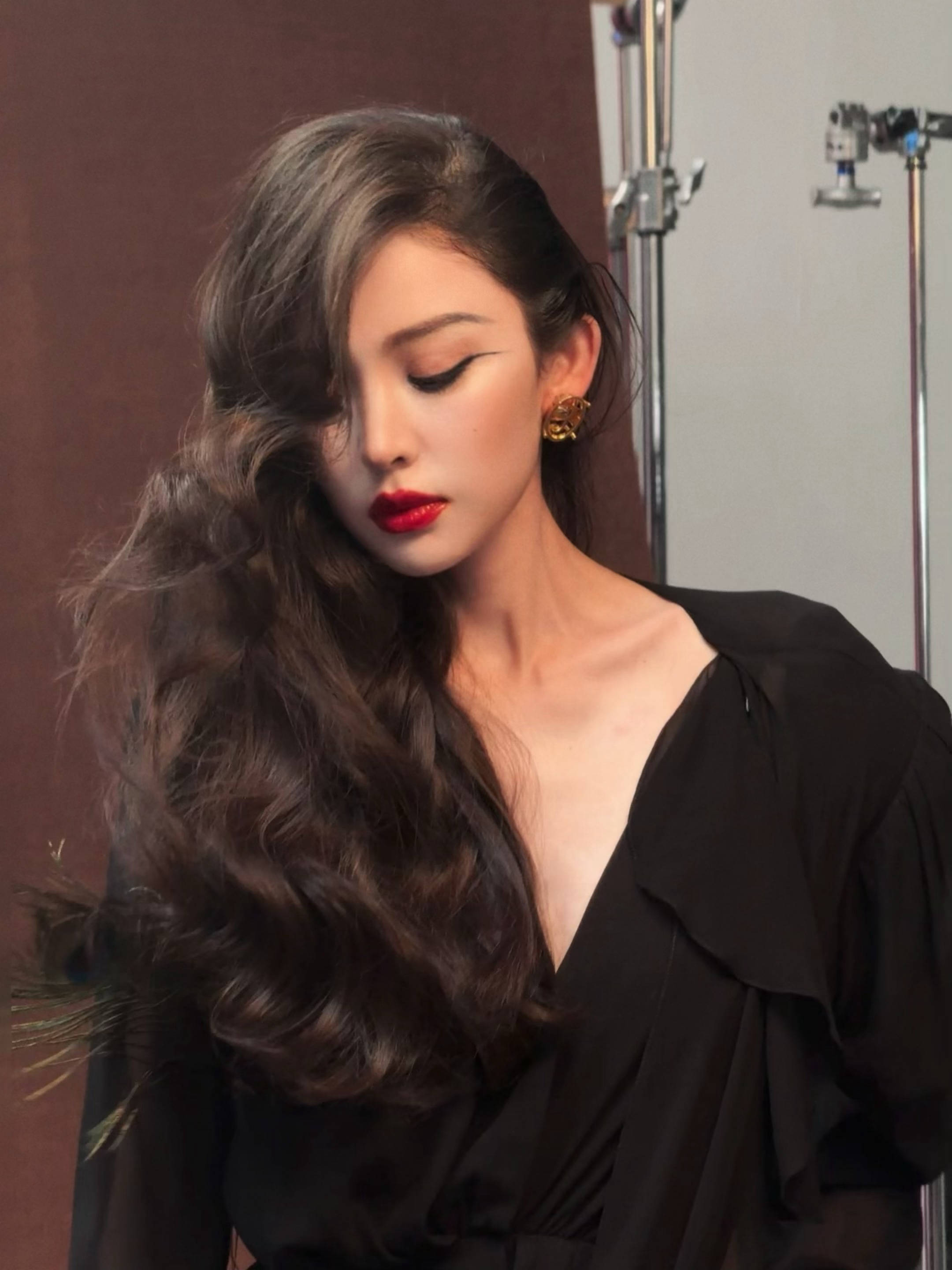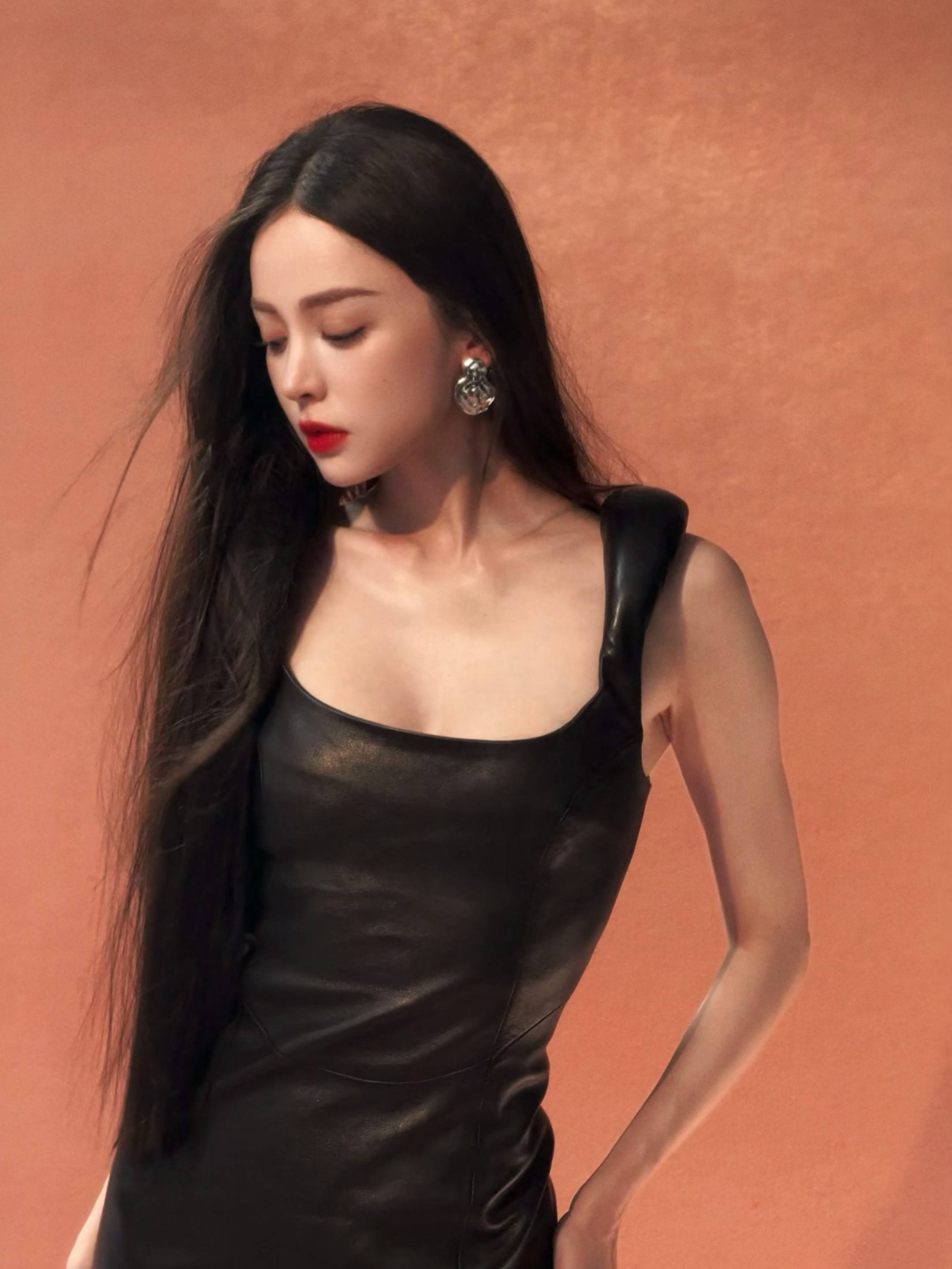 古力娜扎大波浪造型,红唇吸睛。