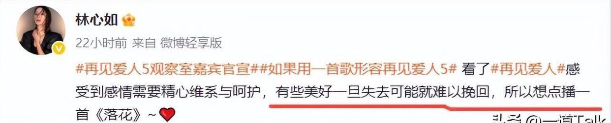 看到49岁的林心如也加入其中,那个“美好失去难以挽回”的话语让人感触颇深,心里难免有点揪心。难道她和霍建华那9年的婚姻也出现了难以修复的问题吗……