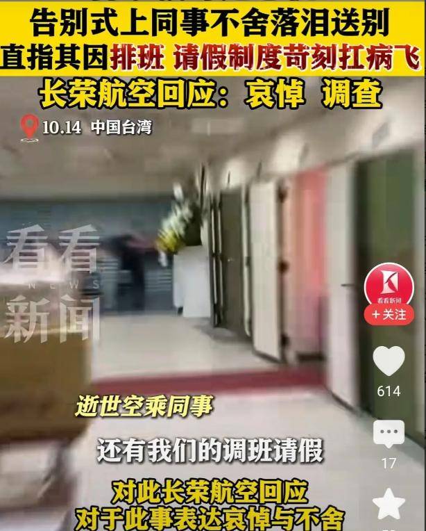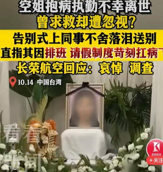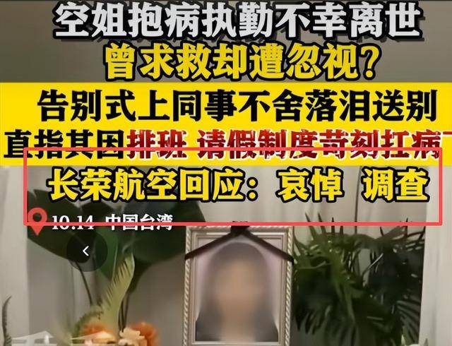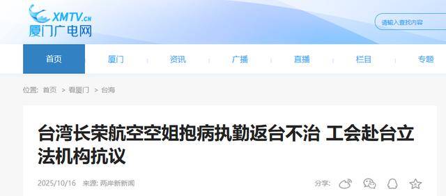 信息来源:厦门广电网2025-10-16:台湾长荣航空空姐抱病执勤返台不治 工会赴台立法机构抗议