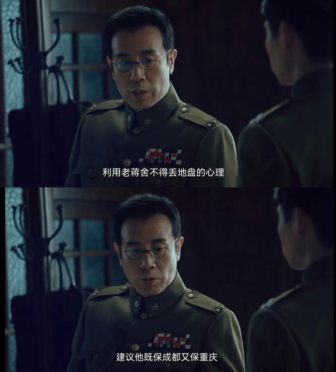 剧中,解放军进攻川渝时,吴石利用蒋介石舍不得丢地盘的心理,在军事会议上建议既保成都,又保重庆,分兵驻守。看似合理,实为陷阱,为解放军对川渝的各个击破创造了有利条件。