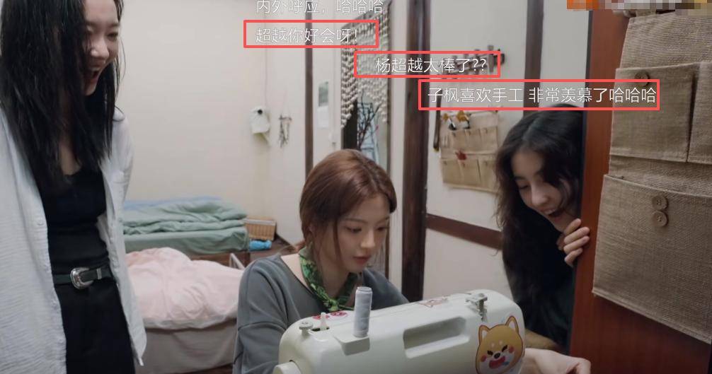 没想到,看起来十指不沾阳春水的杨超越居然成为了节目中第一个采用它的人,看着杨超越熟练的用缝纫机缝布,旁边的张子枫都快变成星星眼了。