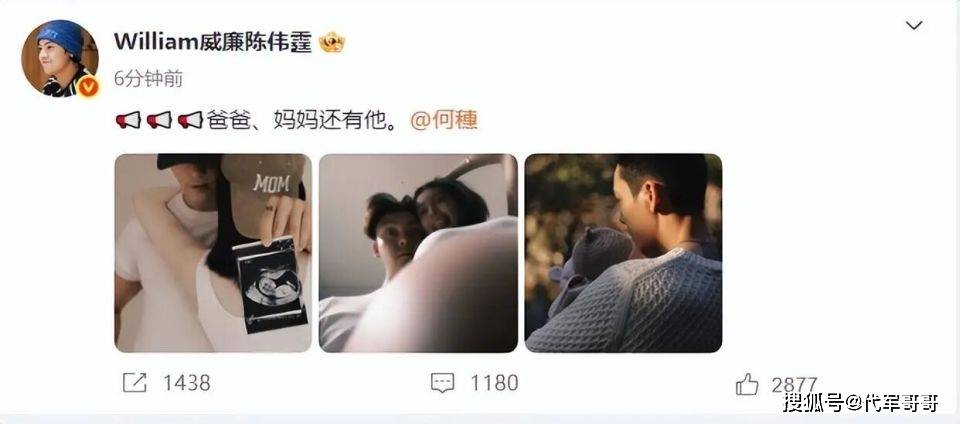 2025 年 10 月 18 日上午 10 时,陈伟霆与何穗同步在社交平台抛出重磅喜讯 —— 两人以 “爸爸、妈妈还有他” 的简洁配文,搭配三张温馨合照正式官宣结婚生子,瞬间将 #陈伟霆何穗当爸爸妈妈# 话题推上热搜榜首。