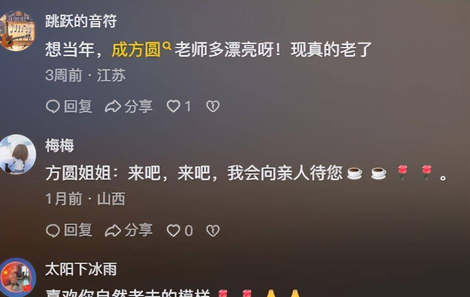 镜头一靠近,成方圆脸上的皱纹都出来了,久未见她的网友们忍不住感叹:“变老了。”