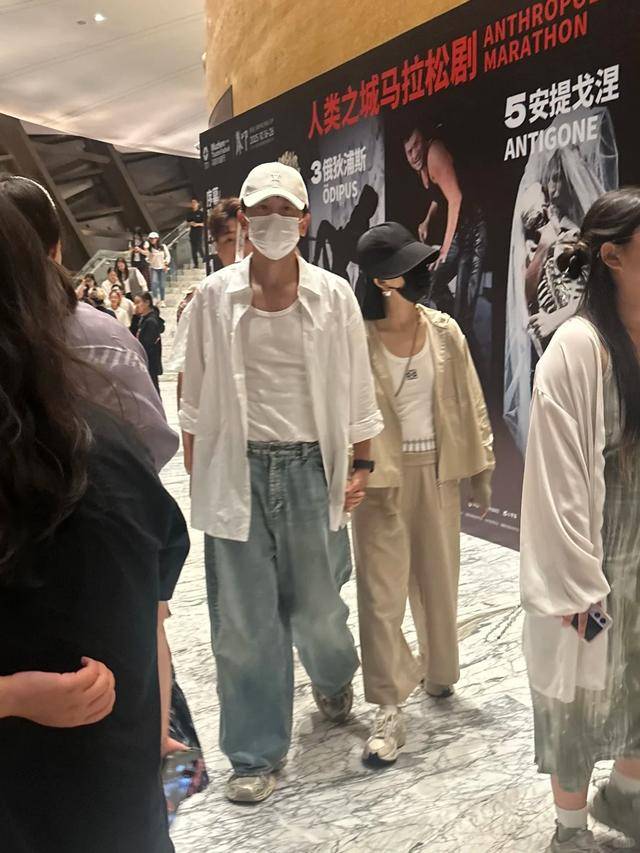 俩人穿着都很低调,宽松衬衫搭配牛仔裤,都戴着黑白棒球帽和口罩,夫妻俩还穿上情侣装了。
