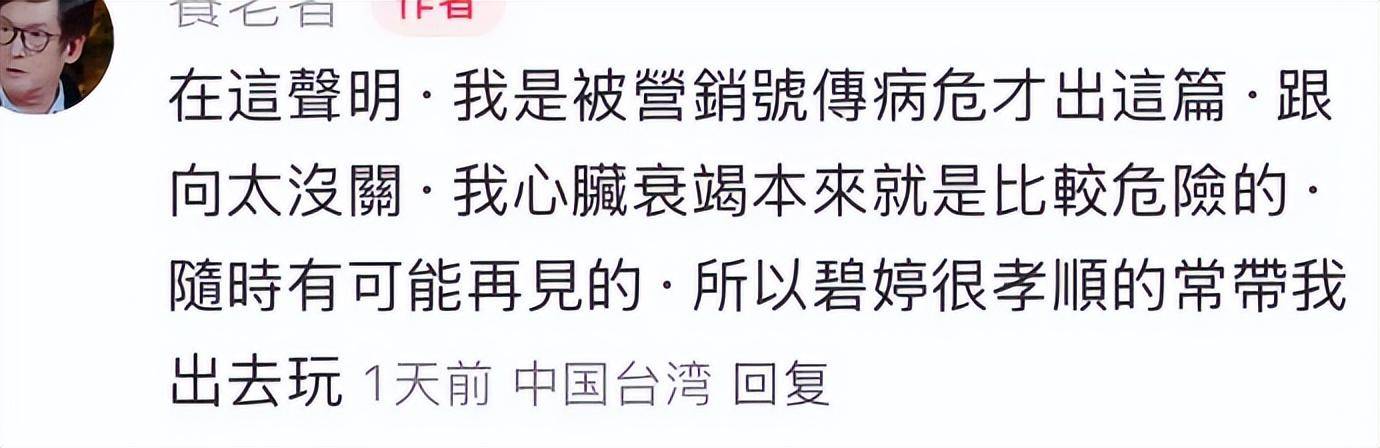 不过更引人注意的是,向太还提到了郭碧婷父亲的身体近况。