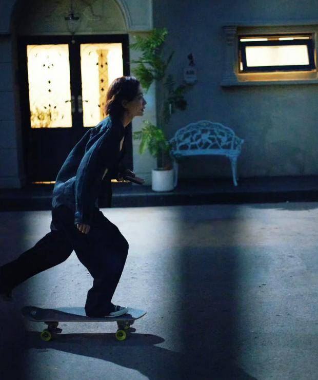王珞丹的长相虽然秀气,但内心却酷爱玩一些极限运动,比如滑板。