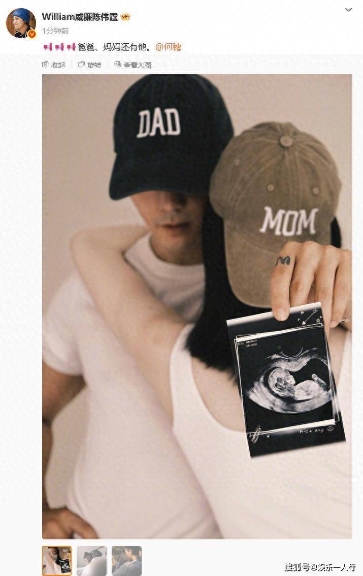 10月18日,陈伟霆与何穗同步在社交平台发文,配着B超照、孕期合影和宝宝萌照,正式宣告升级为父母。