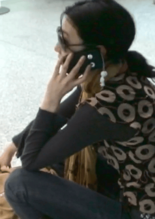 视频后段,记录了张曼玉在机场的多个画面:有行李箱大笑前进的,有蹲在地上打电话的。