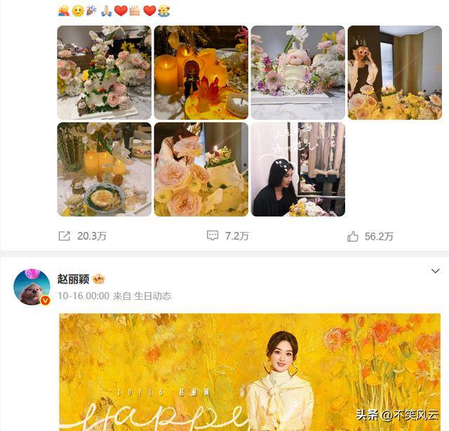 10 月 16 号,是赵丽颖 38 岁生日,她一开始只发了一张油画风格的照片,尽显温柔和从容。
